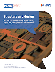 We are proud to offer the PLAIN eJournal as a benefit to all members. This digital resource is published twice a year. With this journal, we aim to keep our members up to date with international developments in plain language.