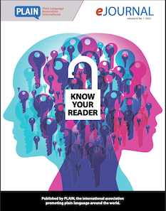 We are proud to offer the PLAIN eJournal as a benefit to all members. This digital resource is published twice a year. With this journal, we aim to keep our members up to date with international developments in plain language.